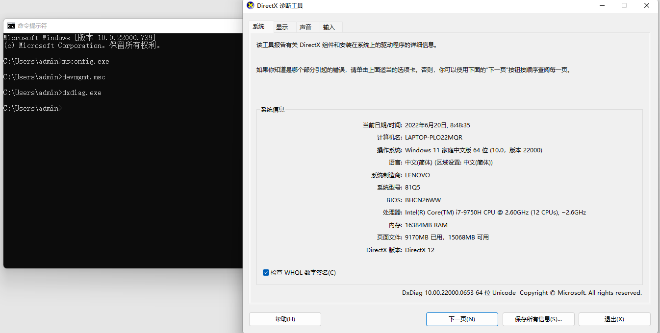 图2 3.dxdiag 检查directx的信息,检查显卡的状态,见图3。