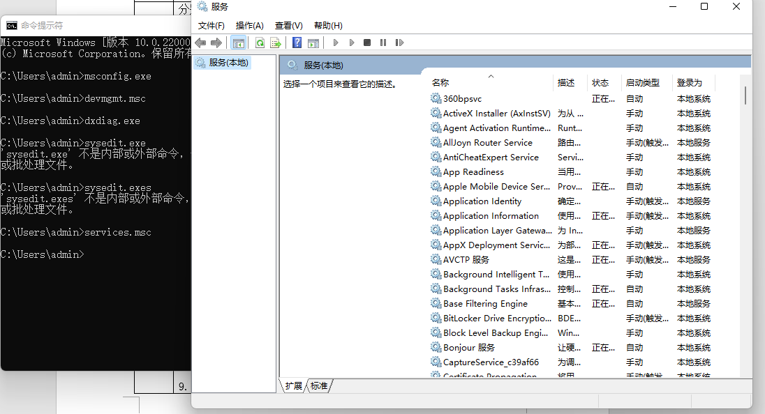 分别简要介绍下面这10个命令的概念和作用。 1. msconfig.exe msconfig.exe用于查看、编辑和管理操作系统配置文件及随操作系统自动启动的程序/服务,包括:Win.ini、boot.ini、系统服务和自动启动程序等。 2. devmgmt.msc 用于打开设备管理器 3. dxdiag.exe dxdiag.exe是Windows的directx诊断工具。它可以显示您的计算机上directx相关的文件,检查正在运行的文件、输入设备、以及视频驱动程序版本。他还可以用来诊断和测试DirectPlay、DirectSound、DirectMusic、DirectDraw和Direct3D的功能。 4. sysedit.exe sysedit.exes 是MicrosoftWindows系统配置文件编辑程序,用于编辑autoexec.bat、config.sys、win.ini、protocol.ini、system.ini等系统配置文件。 5. services.msc Services.msc是Windows2000/XP/2003/Vista/7/2008/8/8.1/10系统中用来启动、终止并设置 Windows 服务的管理策略。