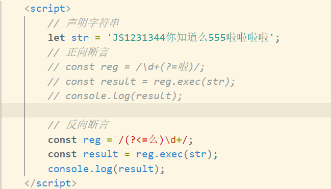ES9 支持反向断言,通过对匹配结果前面的内容进行判断,对匹配进行筛选。