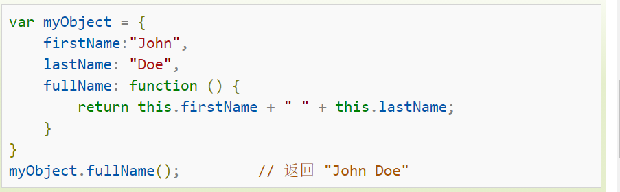 fullName 方法是一个函数,函数属于对象,而myObject是函数的所有者