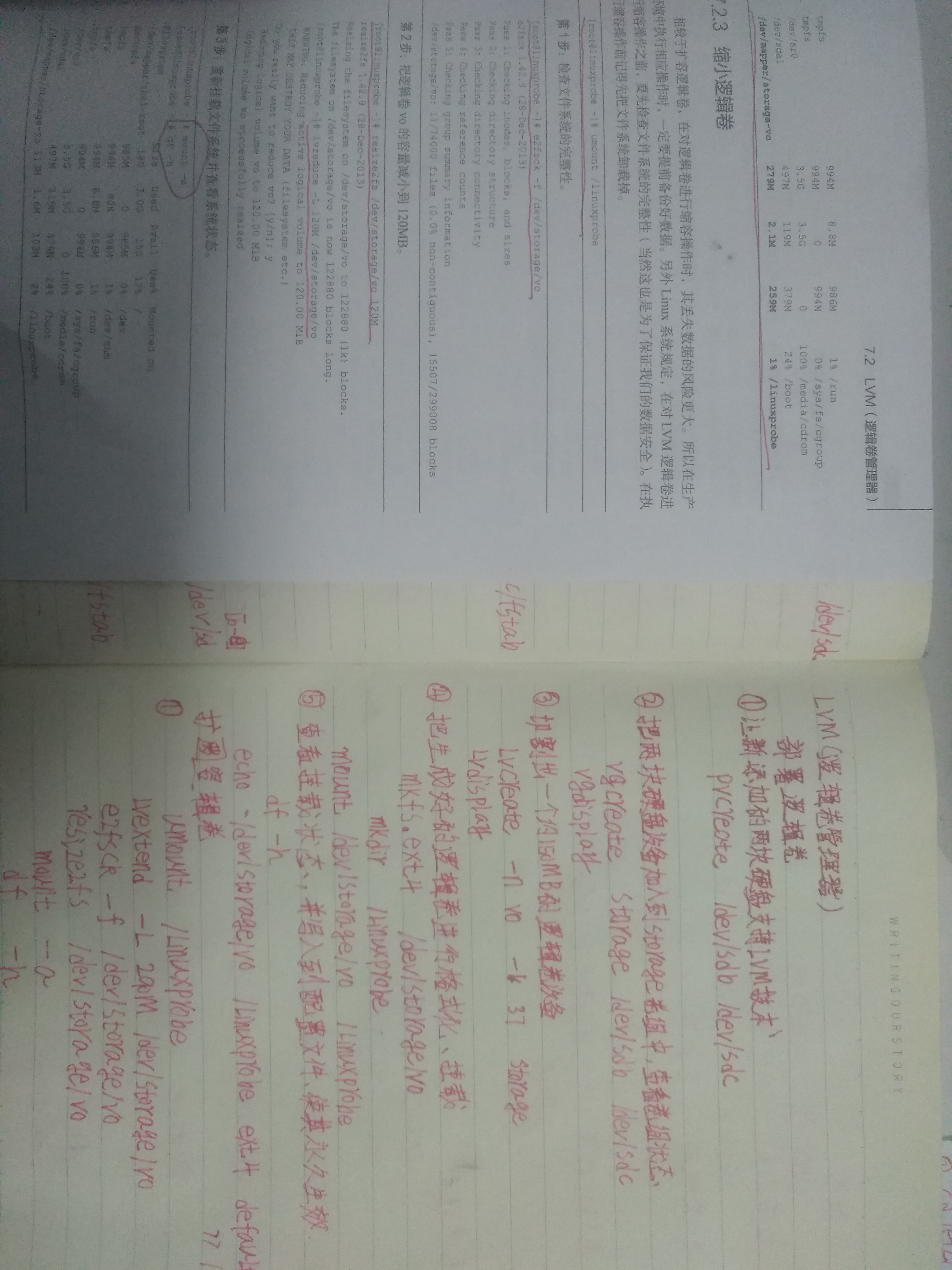 第2步:通知系统内核将逻辑卷vo的容量减小到120M。