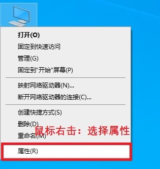 在电脑桌面 右键点击 “此电脑”的“属性”选项