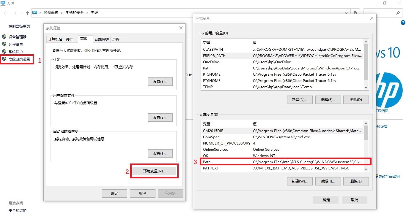 选择“高级系统设置”,选择“环境变量”,选择“Path”系统变量