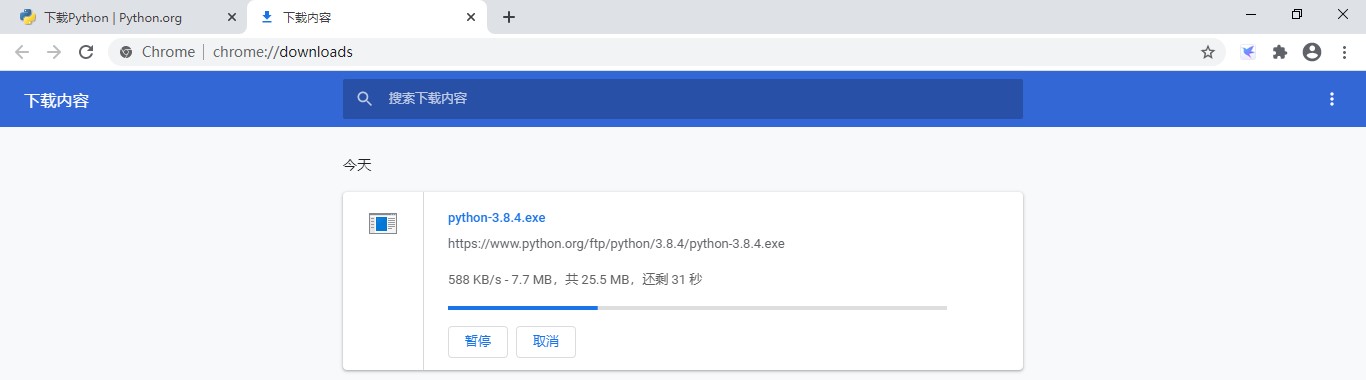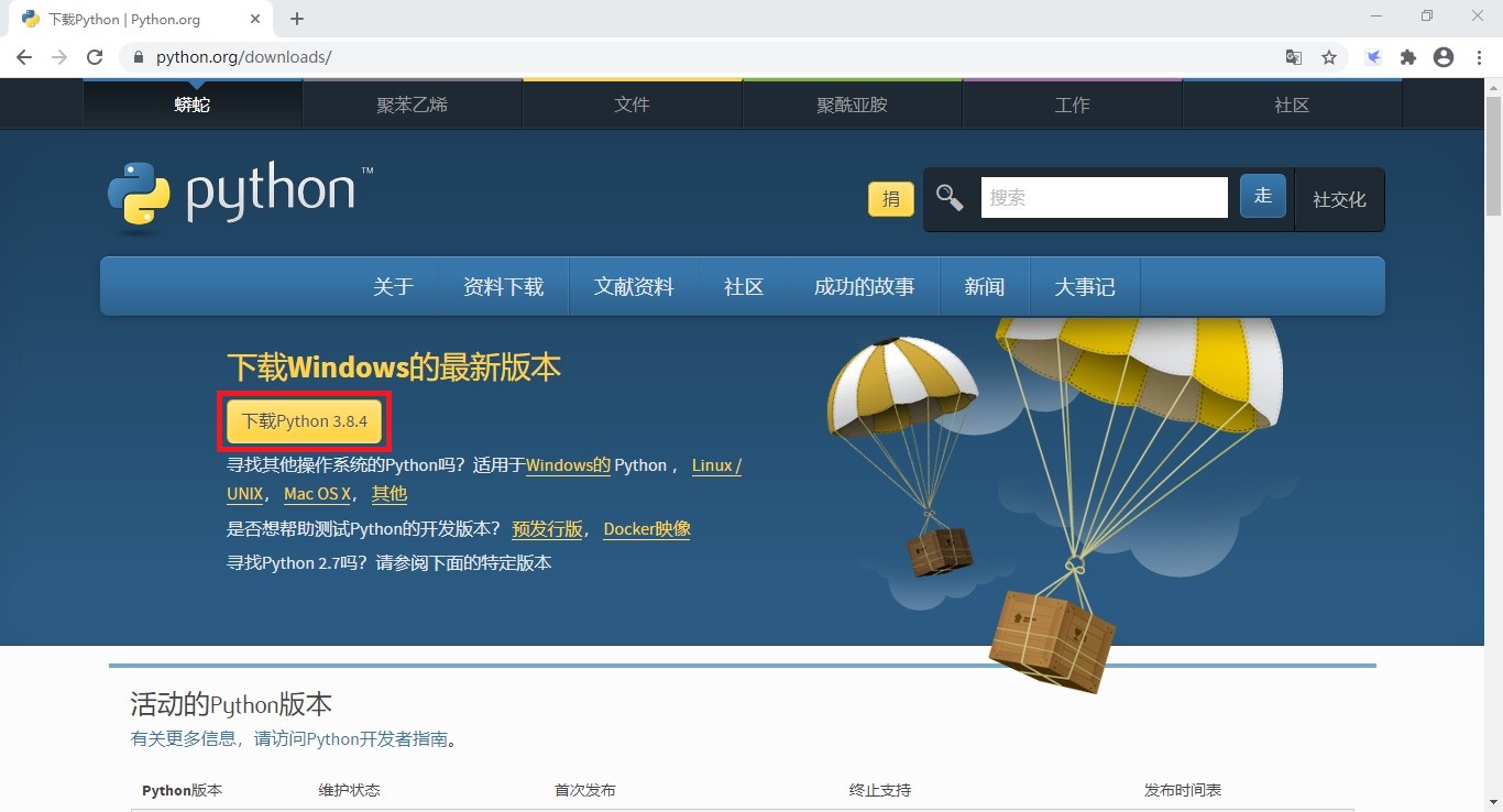 从Python的官方网站下载Python3.8.4最新版,网速慢可以使用迅雷下载,国内用户下载有时变慢。