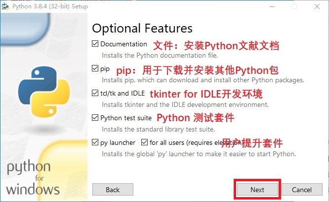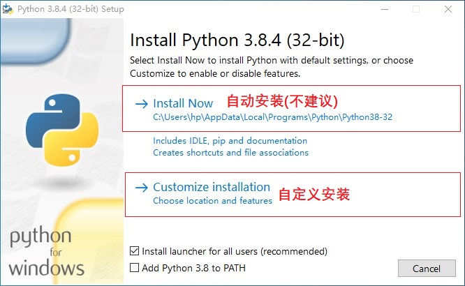 打开下载Python3.8.4最新版,选中 Customize installation “自定义安装”