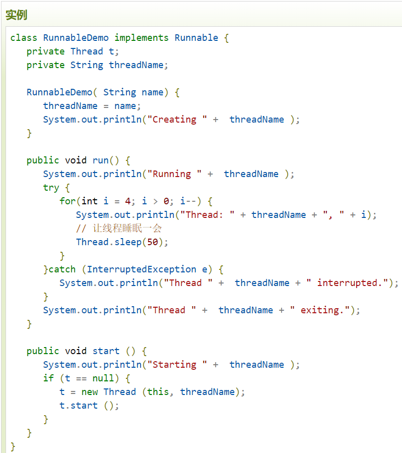 为了实现 Runnable,一个类只需要执行一个方法调用 run(),声明如下: