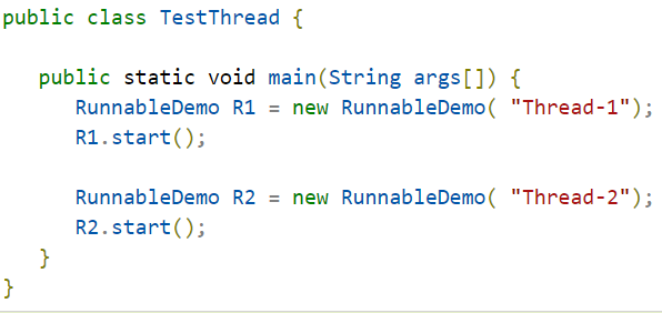 这里,threadOb 是一个实现 Runnable 接口的类的实例,并且 threadName 指定新线程的名字。
