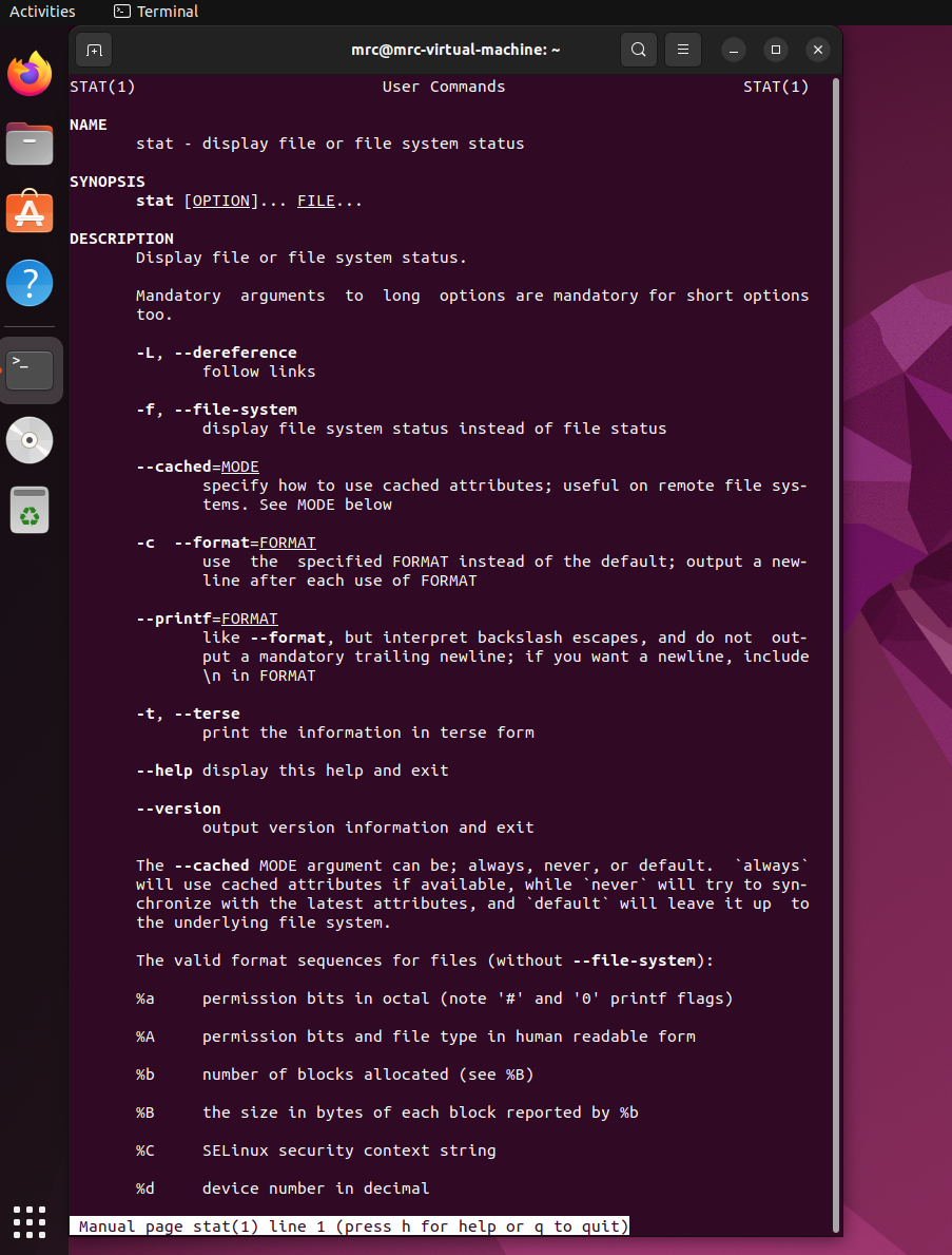 在Ubuntu中通过man手册来学习 stat 命令相关使用方法: