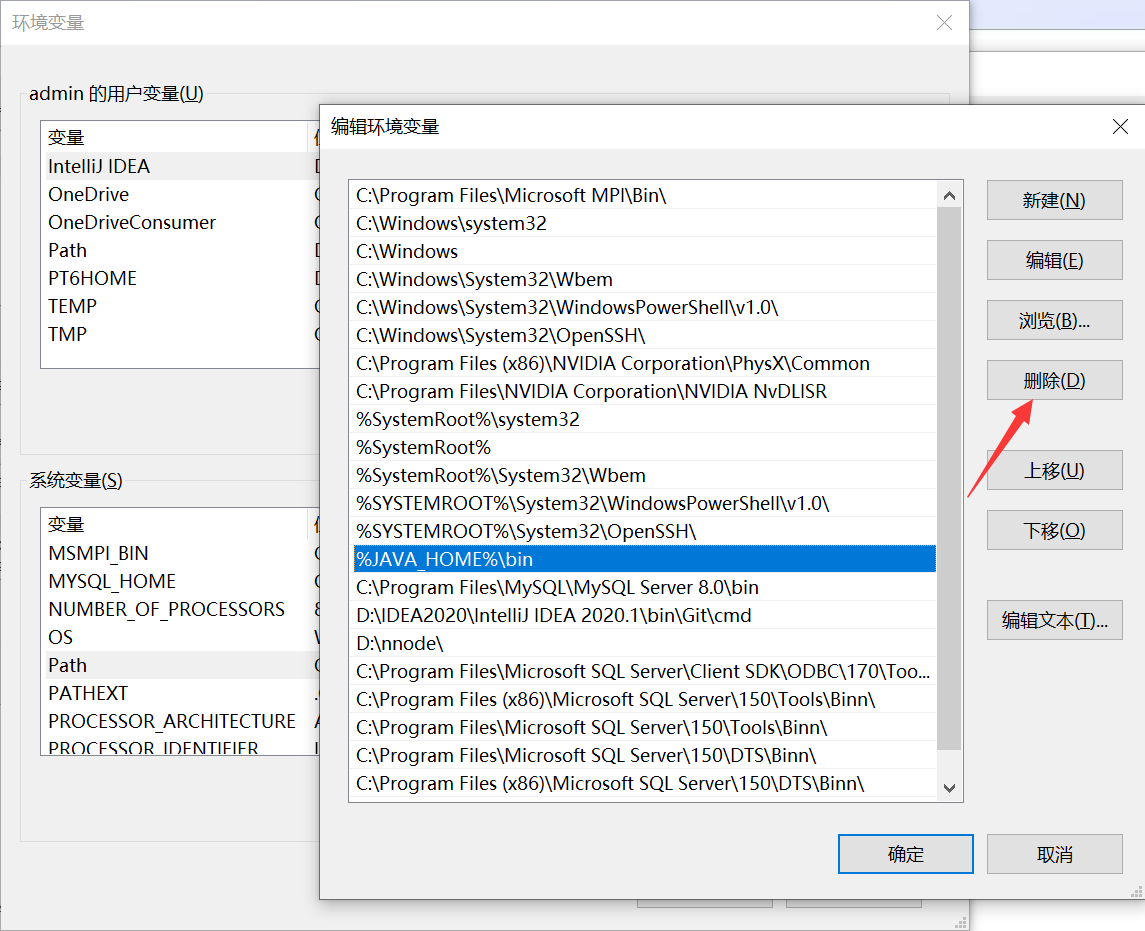 我的电脑->右键->属性->环境变量,变量JAVA_HOME的路径,通过路径找到所在的目录,删除