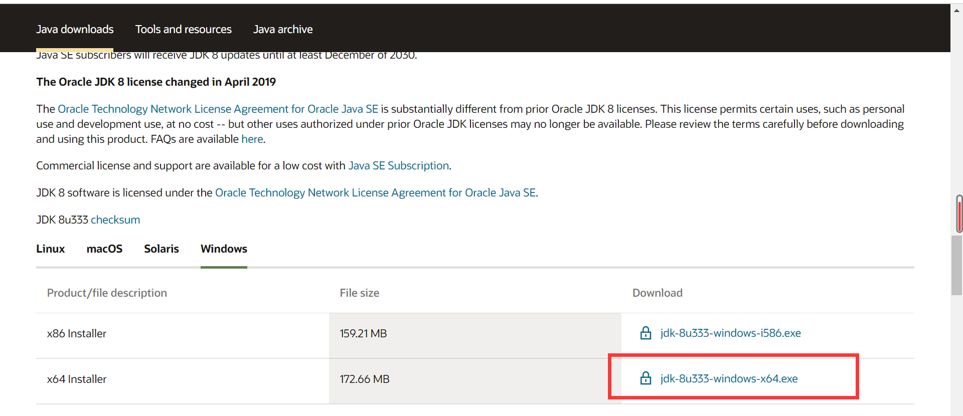 到网上搜索JDK8,找到官网下载地址,注册登录即可下载对应版本