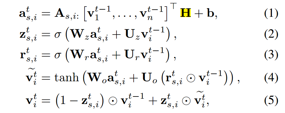 容易发现, 实际上就是 \(\mathbf{a}\) 这个地方不同, 以前的 GRU 是直接用 embedding 作为 \(\mathbf{a}\), 现在需要加一步聚合.