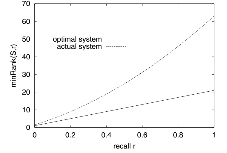 \[\text{S-Precision@r} := \frac{\text{minRank}(R_{opt}, r)}{\text{minRank}(R, r)}, \]其中 \(R, R_{opt}\) 分别表示当前的推荐列表, 以及根据 \(\text{S-Recall}\) 得到的最优的推荐列表. \(0 \le r \le 1\) 是一个 recall level, \(\text{minRank}(R, r)\) 是使得最小的 rank \(K\) 使得整体的 \(\text{S-Recall}@K\) 能够达到 level \(r\). 下图给出了一个实际的比较: