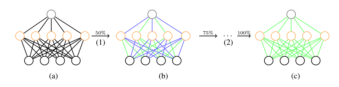 - 接着从剩下的 50% 中挑选 50% 量化, 剩下 25% re-training 以恢复结果;
