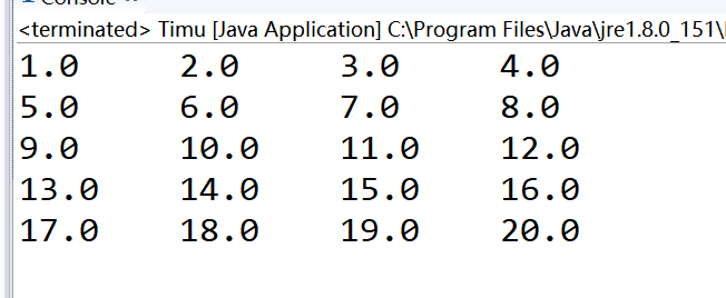 2、输出一个double型二维数组(长度分别为5、4,值自己设定)的值