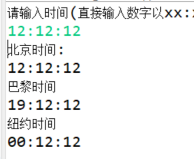 4、巴黎时间比北京时间晚7个小时,纽约时间比 北京时间晚12个小时,试编写一程序,根据输入 的北京时间输出相应的巴黎和纽约时间。[选做题 ]