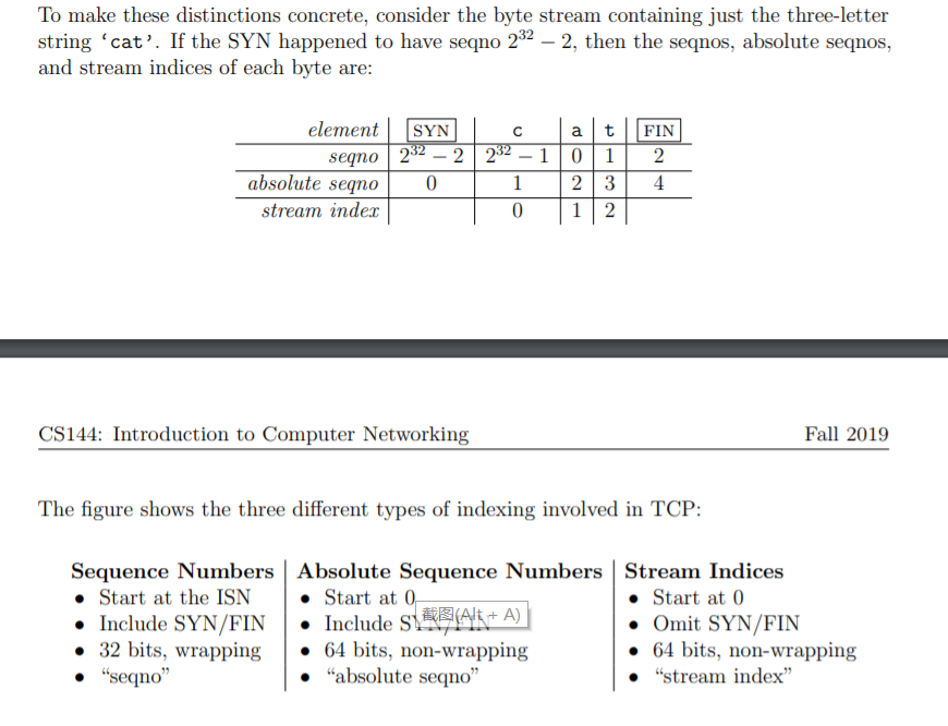 而绝对序列号是流序列号去除syn和fin,所以我实现的时候直接用的流序列号,把第一个字节(图中的'c'字节)作为isn,而不是syn。