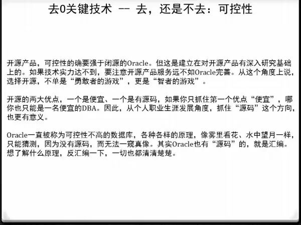 11月7日,由DBA+社群主办的数据库技术沙龙在上海成功举办。本次沙龙特邀Oracle数据库领域传奇人物、前阿里B2B最高级别Oracle DBA吕海波(VAGE)分享去O的技术之谈。在“去,还是不去”的抉择中,他表示需要考虑三大重要问题——成本、可控性、高层或领导意志,并提出要“让合适的技术,解决合适的问题”。(点击页尾【阅读原文】可直接观看演讲视频)