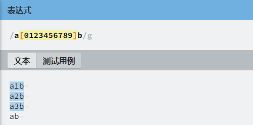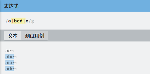其实现方式是使用字符组 [abc],表示该位置的字符可以是 a、b、c 中的任意一个。