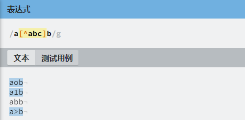 如果字符组中的某一位置可以是除了 a、b、c 外的任何一个字符,可以使用脱字符写成 [^abc]。