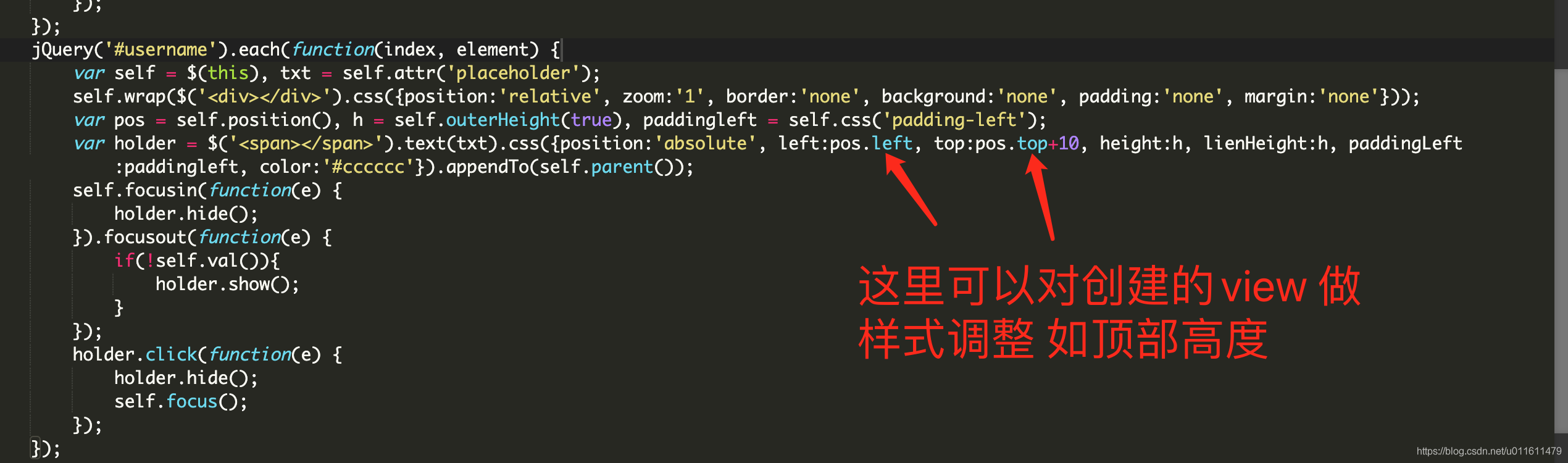 var holder = $('<span></span>').text(txt).css({ position: 'absolute', left: pos.left, top: pos.top, height: h, lienHeight: h, paddingLeft: paddingleft, color: '#aaa' }).appendTo(self.parent());