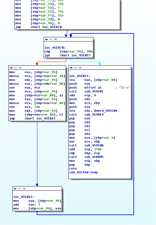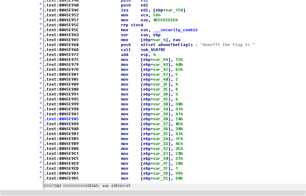发现是一个循环,仔细看一下汇编发现其实是两个数组按位异或然后再和13h异或就是flag,代码有时间加上