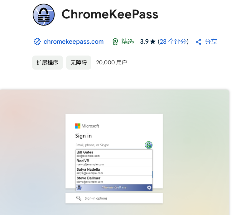 朋友们可以选择安装另一个版本“ChromeKeePass”或“EdgeKeePass”他们都是由作者 RoelVB 开发的,并且有更好的体验效果,支持输入筛选
