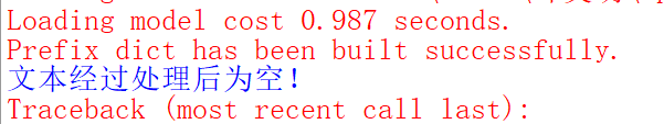print('文本经过处理后为空!') # 文件处理后为空则抛出异常,利用计算时分母为0的转义