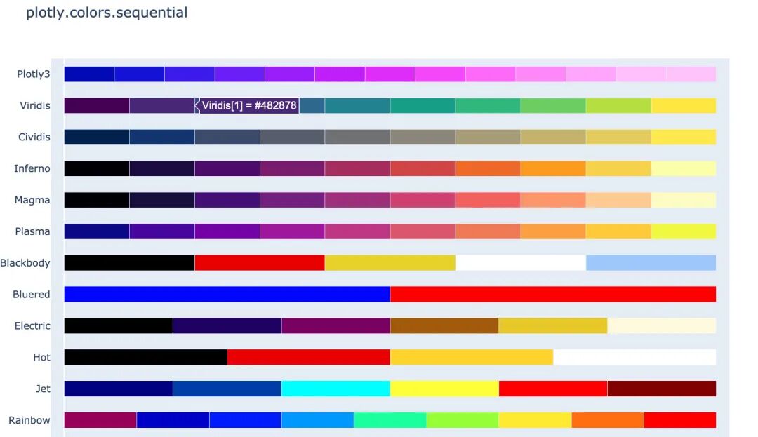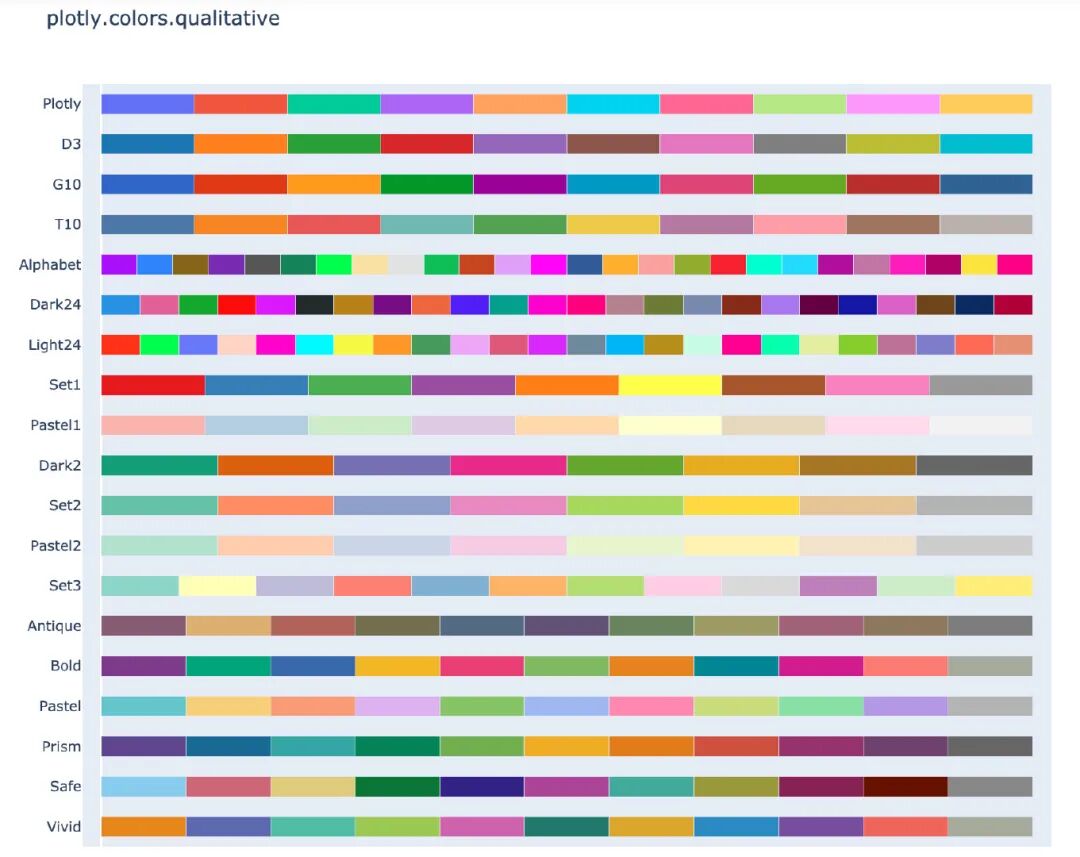 在px中有很多的颜色可以供选择,提供了一个颜色面板:px.colors.qualitative.swatches()