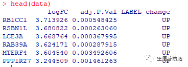 head(data) #查看数据类型,主要有P值,Fold change和基因ID即可。