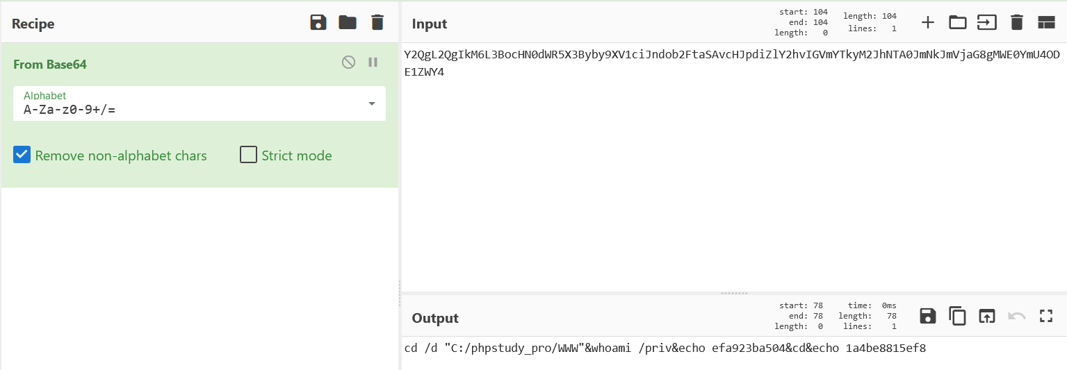 cd /d "C:/phpstudy_pro/WWW"&whoami /priv&echo 1d3632&cd&echo 78bc462ab