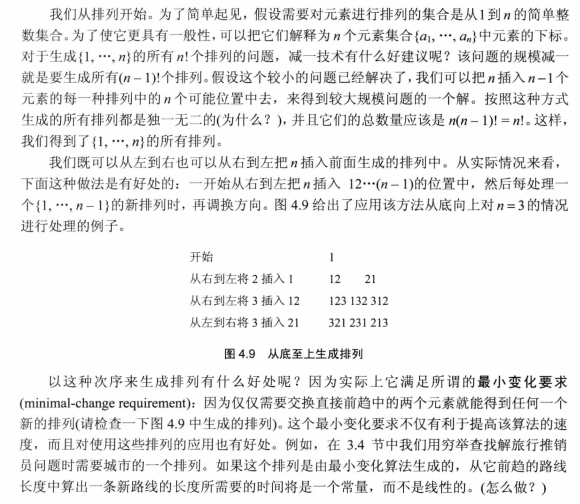 旅行商问题的核心,就是求n个不同城市的全排列,通俗一点的话,就是求1n的全排列。下面两种方法都是基于减治思想进行的,此处只实现求取1n的全排列。对于每一种排列,在旅行商问题中还得求取其相应路径长度,最后,在进行比较从而得到最短路径,对于求取最短路径的思想在2.1蛮力法中已经体现,此处不在重复,感兴趣的同学可以自己再动手实现一下~