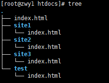 在/usr/local/apache/htdocs/下新建site1,2,3目录 ,目录下创建三个文件 echo依次写入