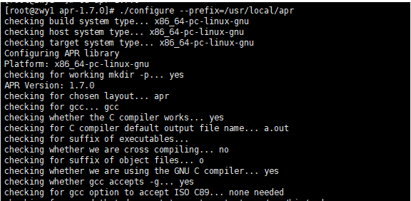 [root@zwy1 httpd-2.4.43]# ./configure --prefix=/usr/local/apache \ #编译
