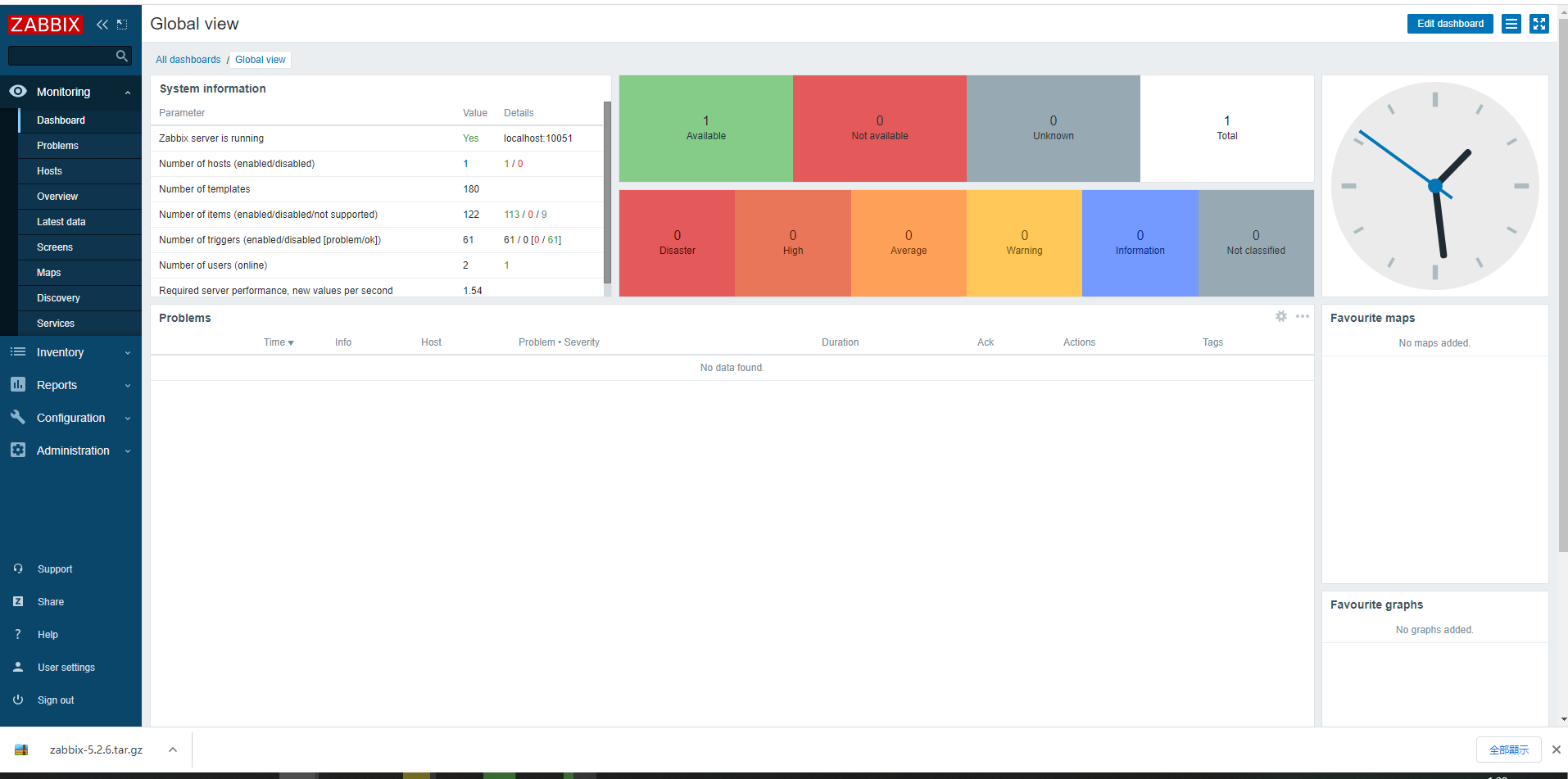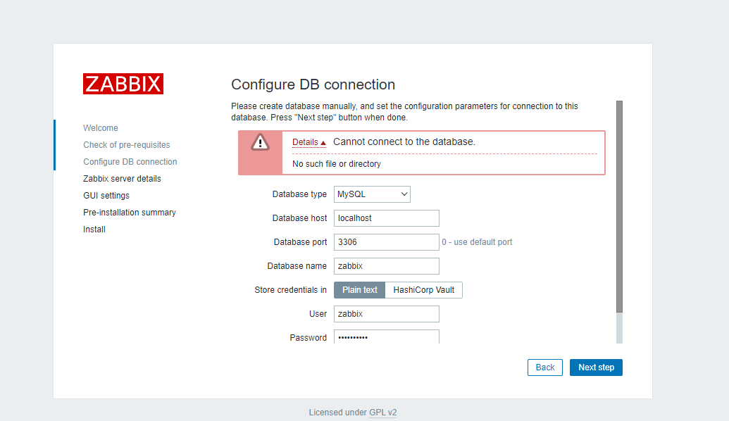 #安装依赖包 [root@localhost ~]# dnf -y install net-snmp-devel libevent-devel #下载zabbix [root@localhost ~]# wget https://cdn.zabbix.com/zabbix/sources/stable/5.2/zabbix-5.2.6.tar.gz #解压 [root@localhost ~]# tar xf zabbix-5.2.6.tar.gz #创建用户 [root@localhost zabbix-5.2.6]# useradd -r -M -s /sbin/nologin zabbix #配置数据库 mysql> show databases; +--------------------+ | Database | +--------------------+ | information_schema | | mysql | | performance_schema | | sys | +--------------------+ 4 rows in set (0.04 sec) mysql> create database zabbix character set utf8 collate utf8_bin; Query OK, 1 row affected (0.02 sec) #创建用户 mysql> create user 'zabbix'@'localhost' identified by '<4564949a>'; Query OK, 0 rows affected (0.02 sec) #授权 mysql> grant all privileges on zabbix.* to 'zabbix'@'localhost'; Query OK, 0 rows affected, 1 warning (0.01 sec) [root@localhost ~]# cd zabbix-5.2.6/database/mysql/ [root@localhost mysql]# mysql -uzabbix -p'<4564949a>' zabbix < schema.sql mysql: [Warning] Using a password on the command line interface can be insecure. [root@localhost mysql]# mysql -uzabbix -p'<4564949a>' zabbix < images.sql mysql: [Warning] Using a password on the command line interface can be insecure. [root@localhost mysql]# mysql -uzabbix -p'<4564949a>' zabbix < data.sql mysql: [Warning] Using a password on the command line interface can be insecure. [root@localhost mysql]#