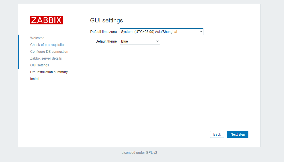 [root@localhost zabbix-5.2.6]# sed -ri 's/(post_max_size =).*/\1 16M/g' /etc/php.ini [root@localhost zabbix-5.2.6]# sed -ri 's/(max_execution_time =).*/\1 300/g' /etc/php.ini [root@localhost zabbix-5.2.6]# sed -ri 's/(max_input_time =).*/\1 300/g' /etc/php.ini [root@localhost zabbix-5.2.6]# sed -i '/;date.timezone/a date.timezone = Asia/Shanghai' /etc/php.ini [root@localhost zabbix-5.2.6]# service php-fpm restart Redirecting to /bin/systemctl restart php-fpm.service