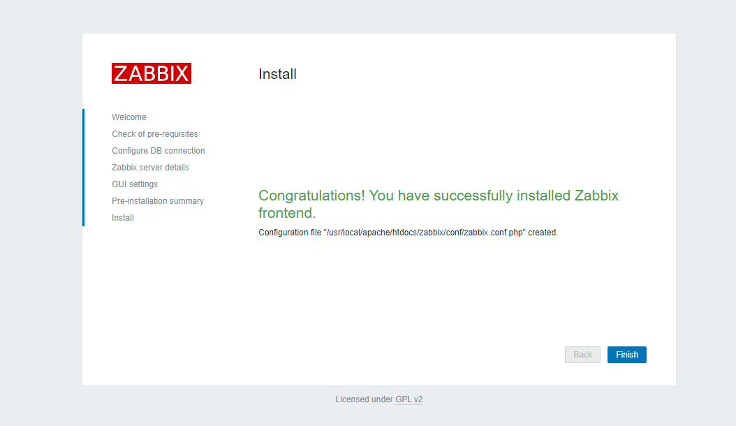 [root@localhost ~]# chmod 777 /usr/local/apache/htdocs/zabbix/conf