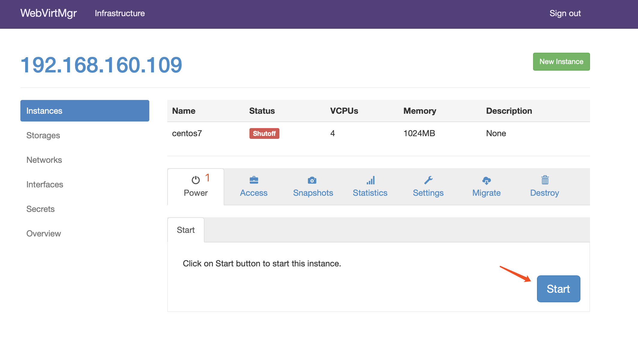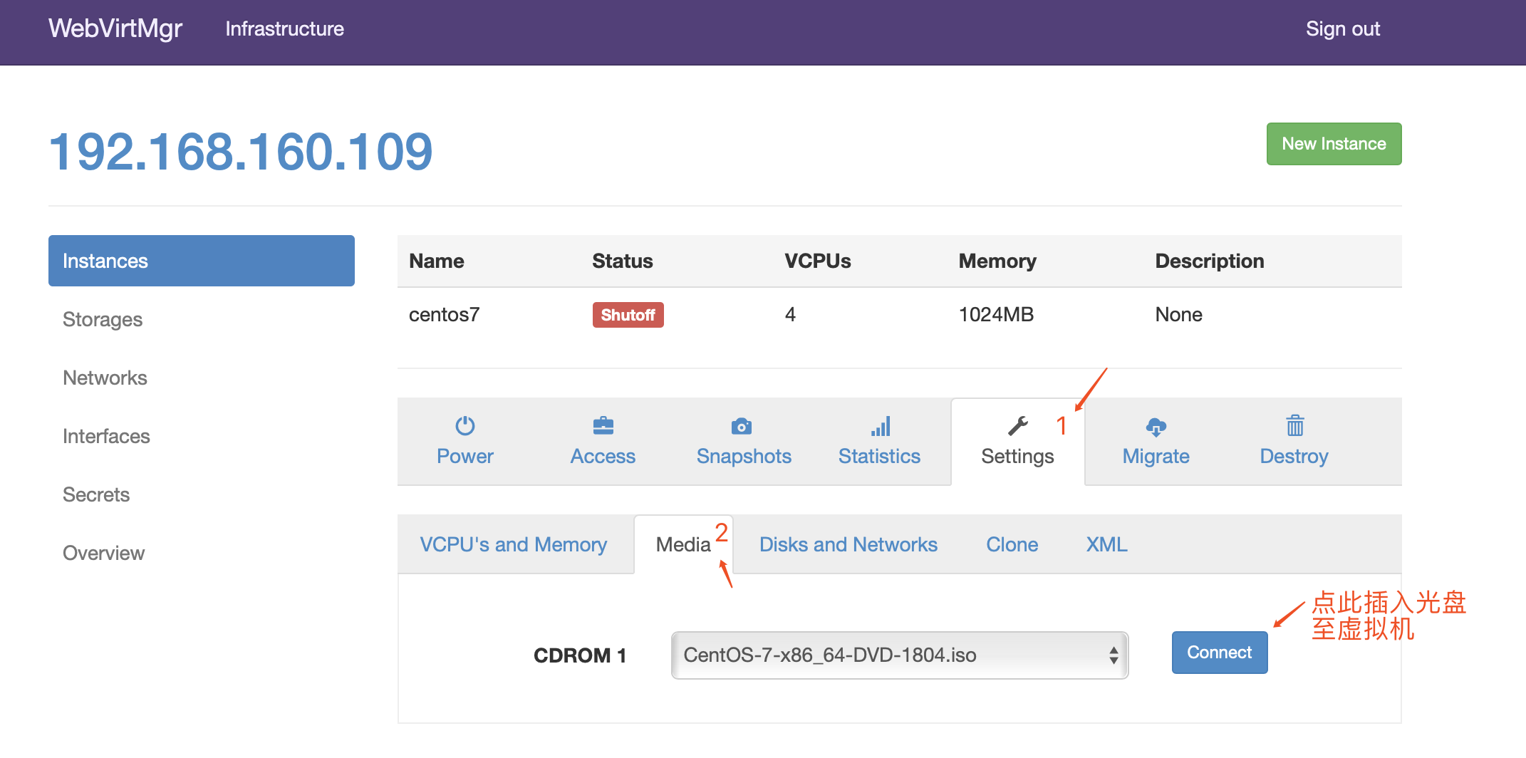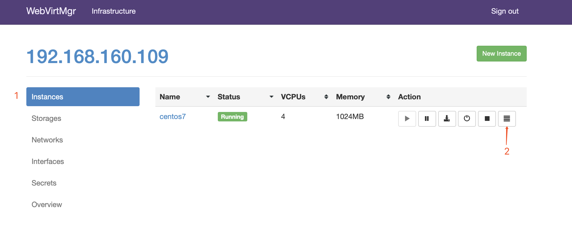 #安装依赖包 [root@143~]# yum -y install git python-pip libvirt-python libxml2-python python-websockify supervisor nginx python-devel #从github上下载webvirtmgr代码 [root@143 ~]# cd /usr/local/src/ [root@143 src]# git clone git://github.com/retspen/webvirtmgr.git Cloning into 'webvirtmgr'... #安装webvirtmgr [root@143 src]# cd webvirtmgr/ [root@143 webvirtmgr]# pip install -r requirements.txt #检查sqlite3是否安装 [root@143 webvirtmgr]# python Python 2.7.5 (default, Nov 16 2020, 22:23:17) [GCC 4.8.5 20150623 (Red Hat 4.8.5-44)] on linux2 Type "help", "copyright", "credits" or "license" for more information. >>> import sqlite3 >>> exit() #初始化账号 [root@143 webvirtmgr]# python manage.py syncdb WARNING:root:No local_settings file found. Creating tables ... Creating table auth_permission Creating table auth_group_permissions Creating table auth_group Creating table auth_user_groups Creating table auth_user_user_permissions Creating table auth_user Creating table django_content_type Creating table django_session Creating table django_site Creating table servers_compute Creating table instance_instance Creating table create_flavor You just installed Django's auth system, which means you don't have any superusers defined. Would you like to create one now? (yes/no): yes //问你是否创建超级管理员帐号 Username (leave blank to use 'root'): //指定超级管理员帐号用户名,默认留空为root Email address: 790650910@qq.com //设置超级管理员邮箱 Password: //设置超级管理员密码 Password (again): //再次输入超级管理员密码 Superuser created successfully. Installing custom SQL ... Installing indexes ... Installed 6 object(s) from 1 fixture(s) #拷贝网页到指定目录 [root@143 webvirtmgr]# cd .. [root@143 src]# mkdir -p /var/www [root@143 src]# cp -r webvirtmgr/ /var/www/ [root@143 src]# ll total 4 drwxr-xr-x 20 root root 4096 Jul 24 05:29 webvirtmgr [root@143 src]# chown -R nginx.nginx /var/www/webvirtmgr/ [root@143 src]# ll /var/www/ total 4 drwxr-xr-x 20 nginx nginx 4096 Jul 24 05:34 webvirtmgr #生成秘钥 [root@143 src]# ssh-keygen -t rsa Generating public/private rsa key pair. Enter file in which to save the key (/root/.ssh/id_rsa): Created directory '/root/.ssh'. Enter passphrase (empty for no passphrase): Enter same passphrase again: Your identification has been saved in /root/.ssh/id_rsa. Your public key has been saved in /root/.ssh/id_rsa.pub. The key fingerprint is: SHA256:NdHNeHbGYVEcS++sKTbRjctrFvRtNpurxf6xdHwpl1A root@143 The key's randomart image is: +---[RSA 2048]----+ | .. + O*| | .o B B| | o o E.| | . . .o= | | S .oo.=| | o+*B| | +.=%B| | . oO+=| | +o++| +----[SHA256]-----+ [root@143 src]# ssh-copy-id root@192.168.59.142 /usr/bin/ssh-copy-id: INFO: Source of key(s) to be installed: "/root/.ssh/id_rsa.pub" The authenticity of host '192.168.59.142 (192.168.59.142)' can't be established. ECDSA key fingerprint is SHA256:RmUyUj8k7idYXko0DM/lQzl4d7ycRPlbhGbFdd1zgvI. ECDSA key fingerprint is MD5:88:36:21:bf:3b:88:3e:ae:04:7e:df:47:1b:fd:6c:1d. Are you sure you want to continue connecting (yes/no)? yes /usr/bin/ssh-copy-id: INFO: attempting to log in with the new key(s), to filter out any that are already installed /usr/bin/ssh-copy-id: INFO: 1 key(s) remain to be installed -- if you are prompted now it is to install the new keys ^[[A root@192.168.59.142's password: Number of key(s) added: 1 Now try logging into the machine, with: "ssh 'root@192.168.59.142'" and check to make sure that only the key(s) you wanted were added. [root@143 src]# ssh root@192.168.59.142 'date' Sat Jul 24 05:40:04 EDT 2021
