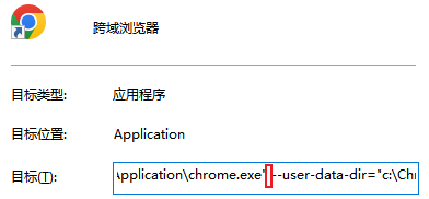 如图在目标地址后面加上上面这段,注意中间需要加个空格。这样就完成了跨域浏览器设置。