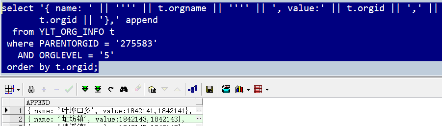 方式二只能将2个字符串拼接到一起,方式二可以嵌套使用:concat(concat('01',name),id)。
