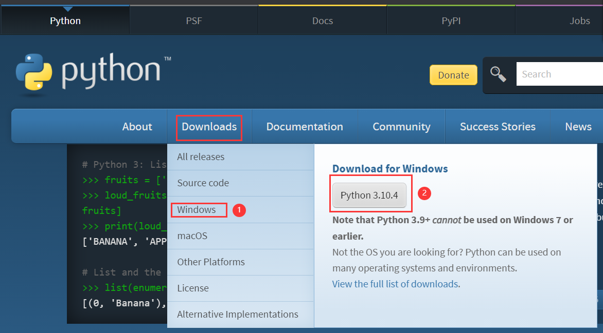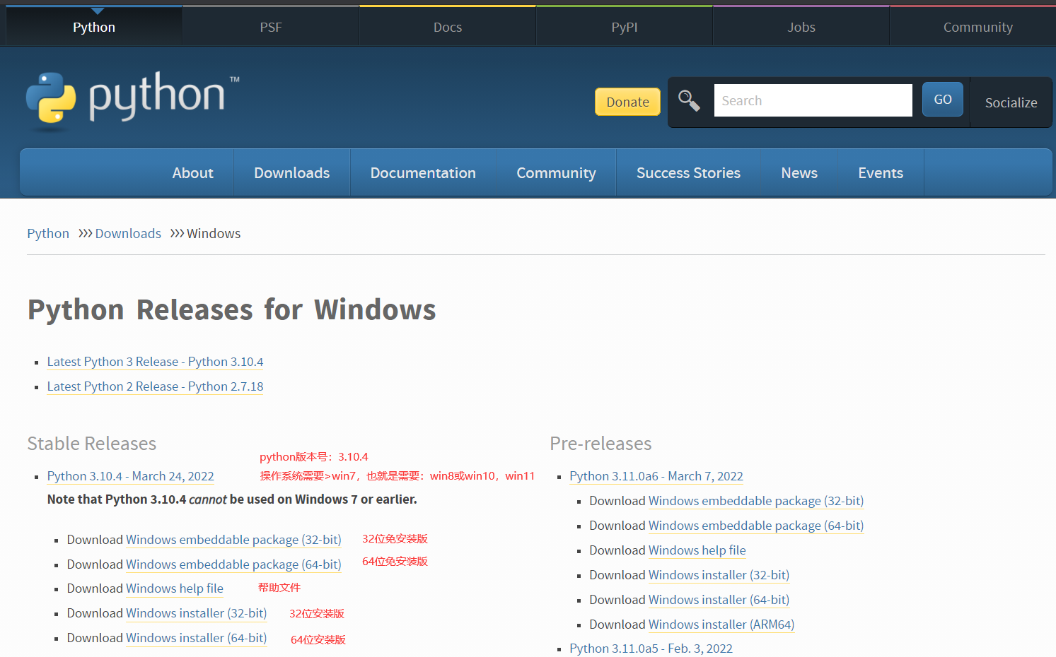 当我们鼠标悬浮到Downloads上的时候,右侧就会出现windows操作环境的安装包(上图圈二)。