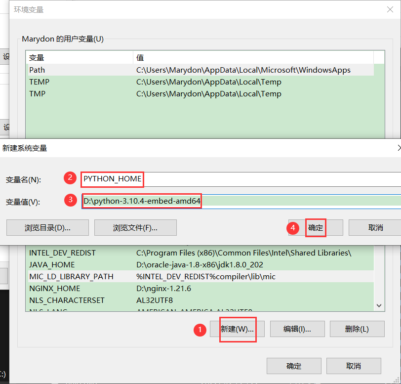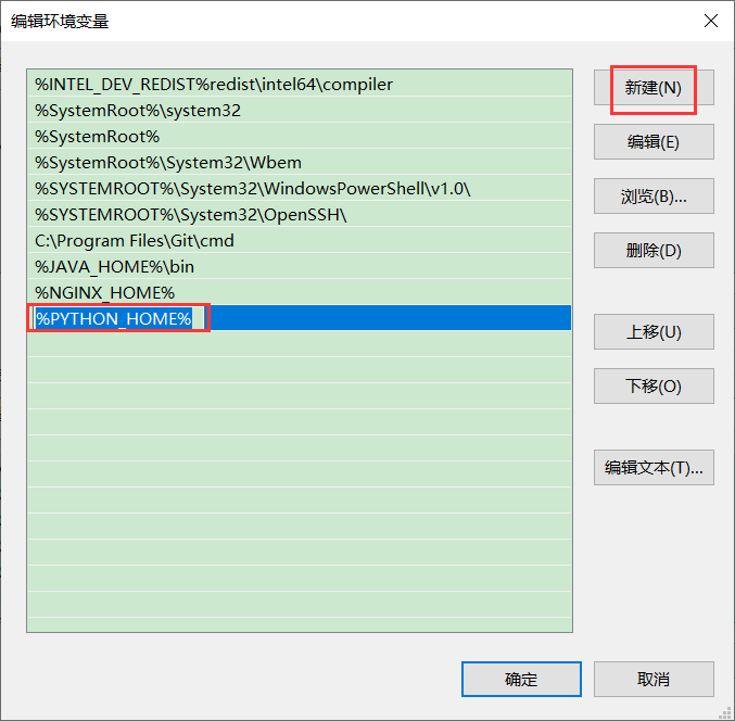 点击“新建”,引入刚才配置好的环境变量,格式:%环境变量名称%,例如:%PYTHON_HOME%。