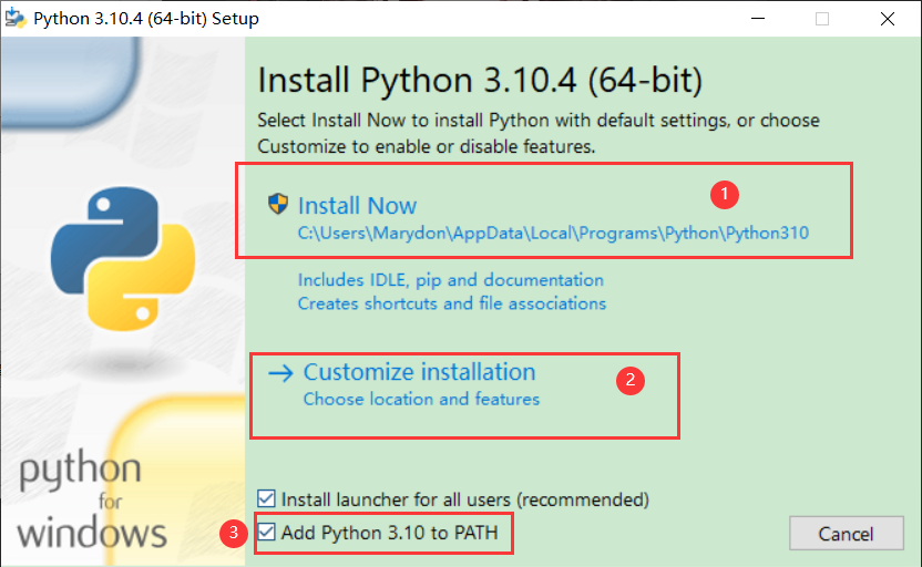 圈三代表的是将python的安装目录添加到环境变量PATH当中(这样做的目的是:我们可以在cmd窗口直接使用python命令)。