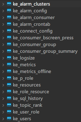 最终,在启动efak的时候,它会自动在当前设置的数据库当中建立以下表。