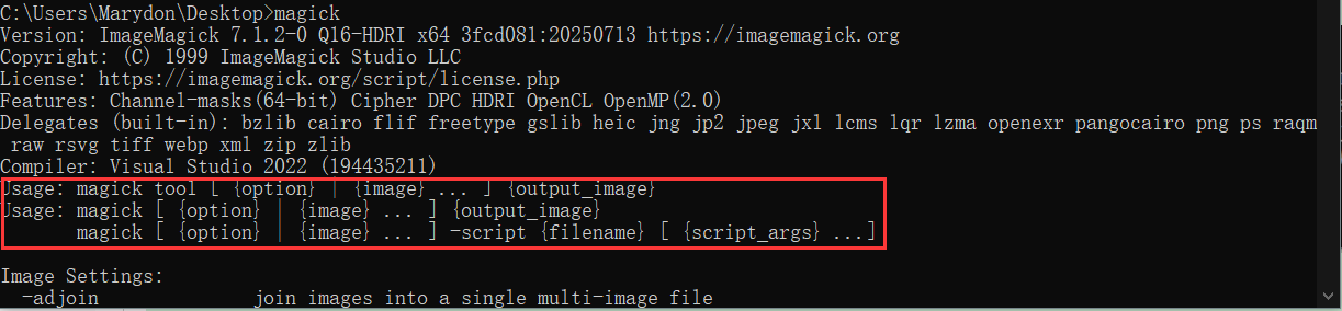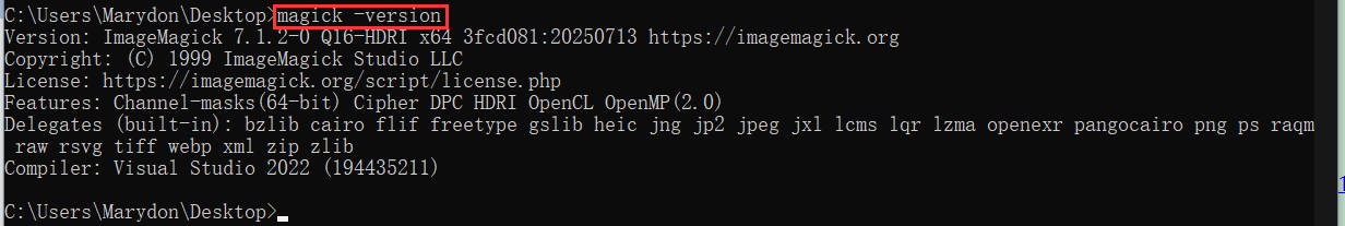 安装完成后,我们就可以在cmd窗口下直接使用magick指令了。