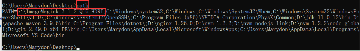 如果环境变量当中没有ImageMagick的安装目录,那就需要你手动将其添加到path中。