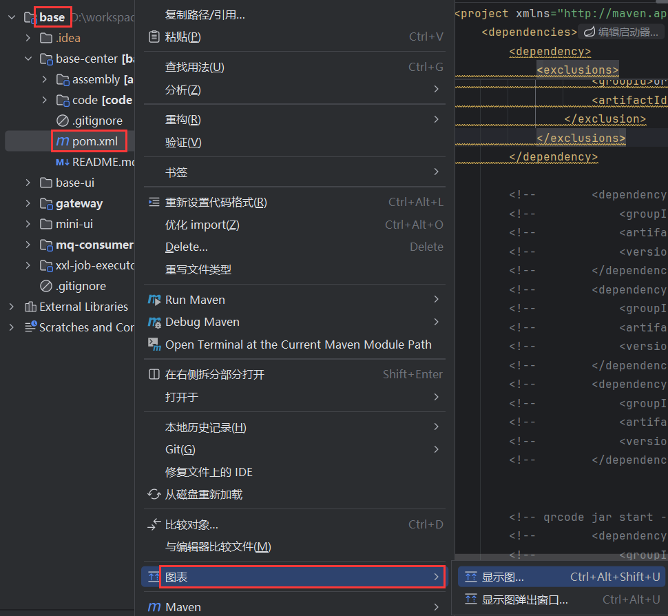 如果确定冲突的依赖在哪个模块,我们直接来到模块下属的pom.xml即可。