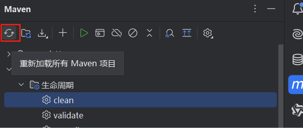 点击maven视图的刷新按钮,会自动重新加载项目所需的jar包(如果本地仓库没有,会自动从远程仓库将所需jar包下载到本地仓库)。