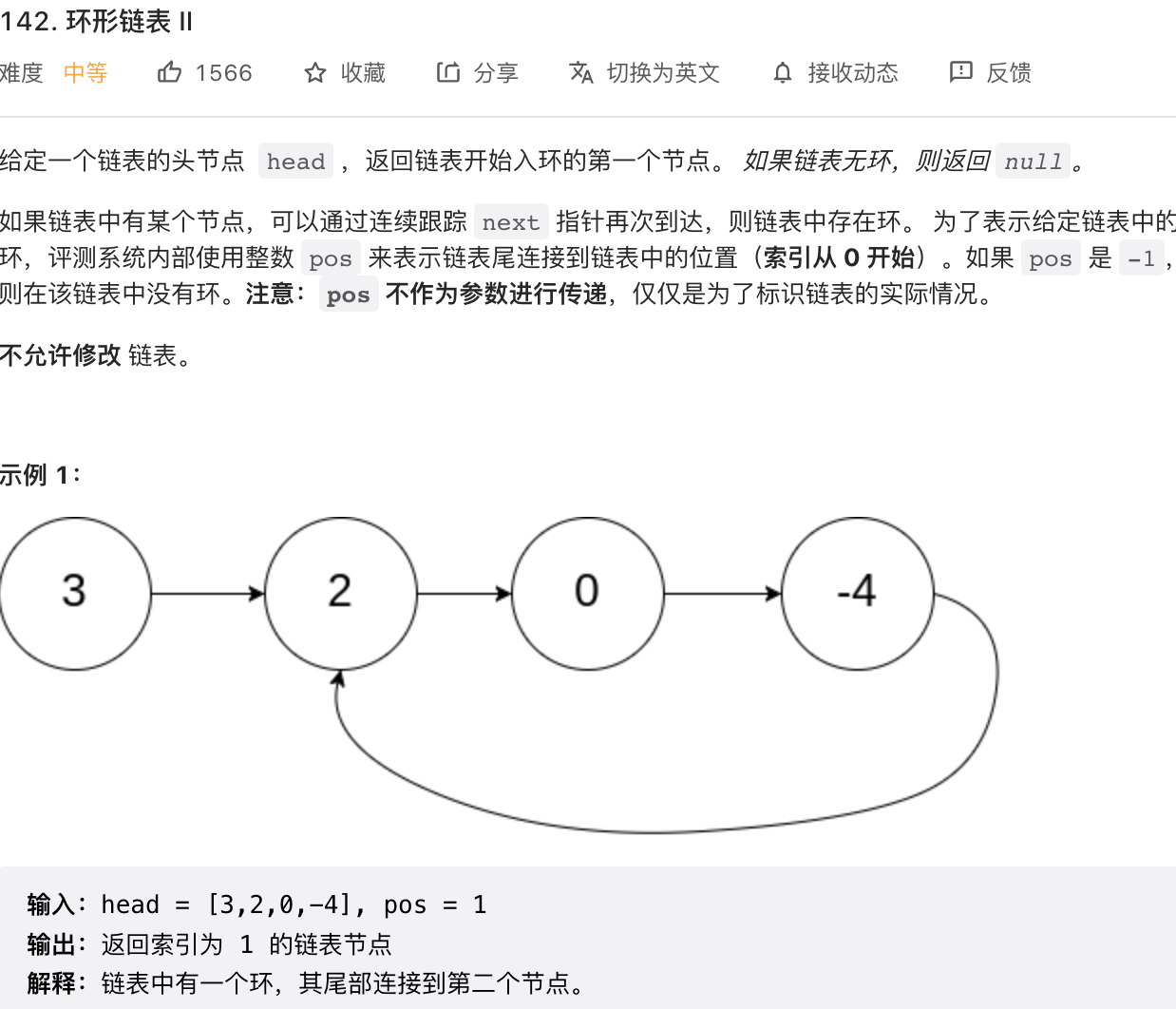 高频考题,使用快慢指针。算法思想是二倍速指针 p 与一倍速指针 q在环中相遇具备如下方程关系: