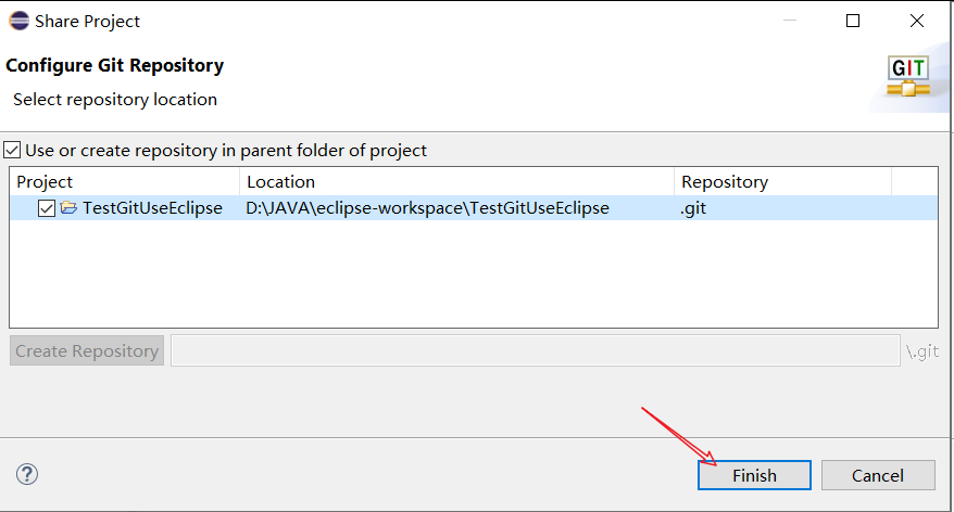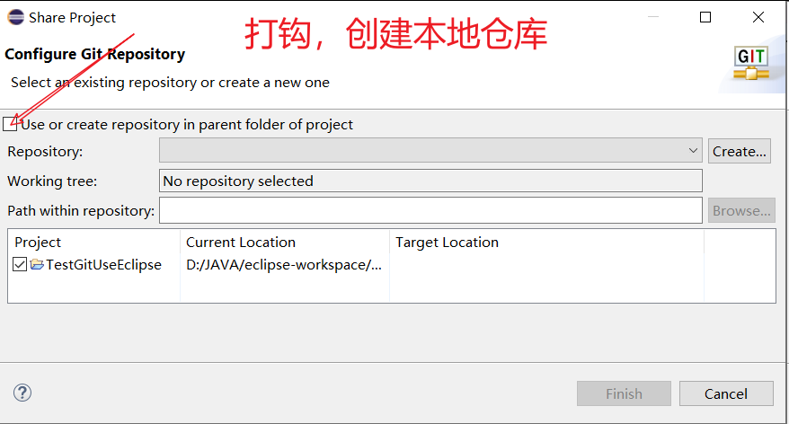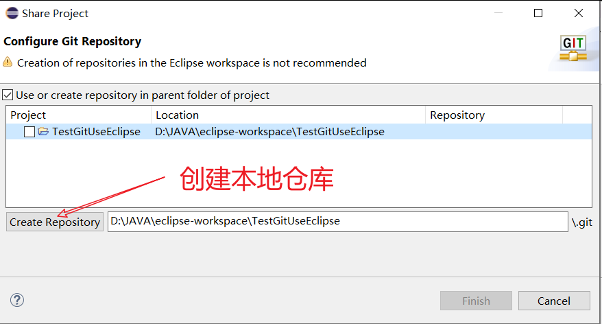 右键工程,Team,Share Project,在弹窗点击下列按钮,