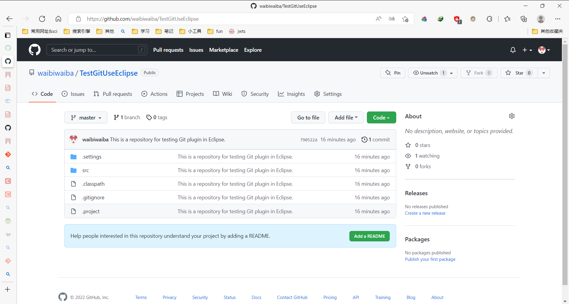 [master (root-commit) 3be7d22] This is a repository for testing uploading projects using Git Bash.